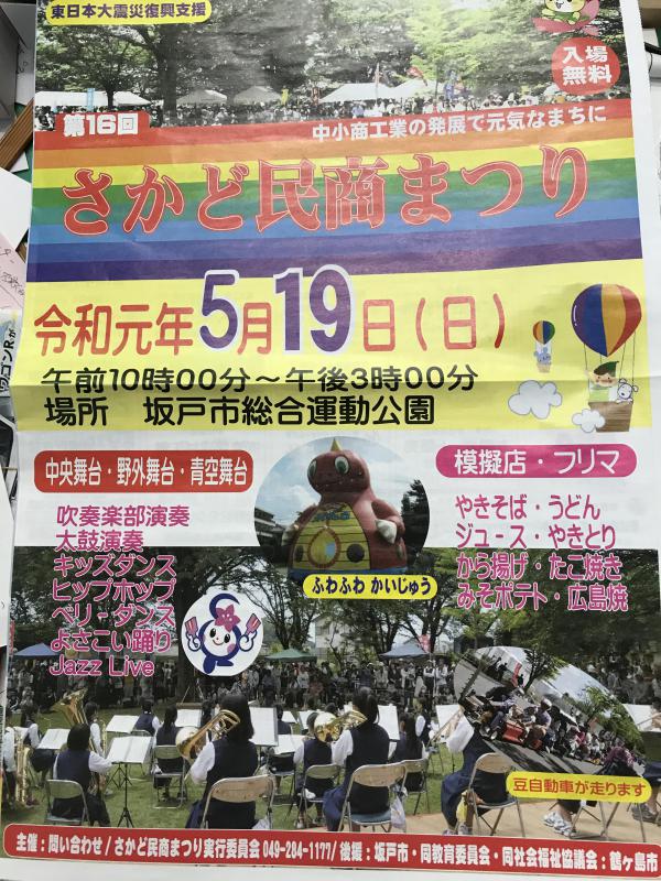 地域情報 2019.05.16 さかど民商まつり 今年もこの時期になりましたねさかど民商まつり10:00から15:00坂戸運動公園にて 出店多数イベント多数商品も抽選でもらえます 今週末です!是非お越しください Post Share Hatena Line Pocket RSS feedly Pin it