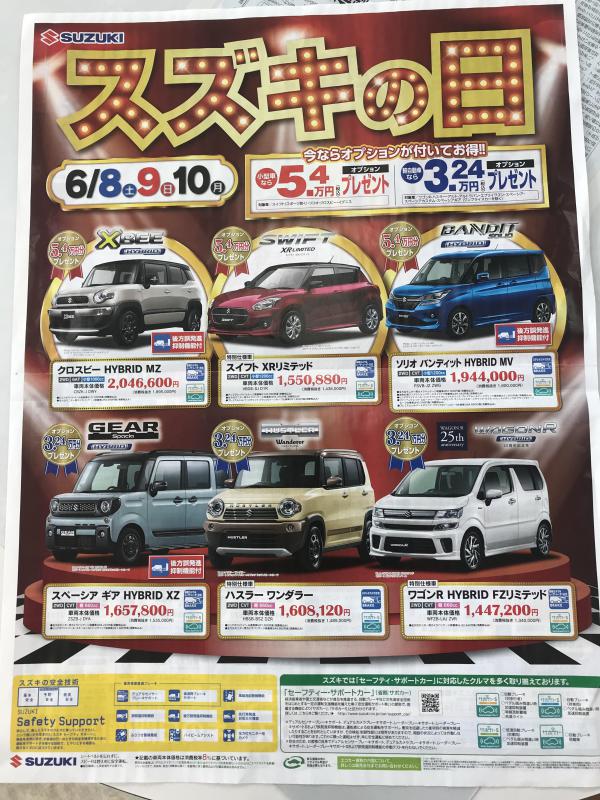 会社イベント 2019.06.08 8.9.10はスズキの日 恒例スズキのひが始まりますよ~今回は8.9.10の3日間ですオプションプレゼントなどもお見逃しなく~ 3日間ご来場プレゼントや査定プレゼントもあります 今回も豪華成約プレゼントもありますので是非お越しください Post Share Hatena Line Pocket RSS feedly Pin it