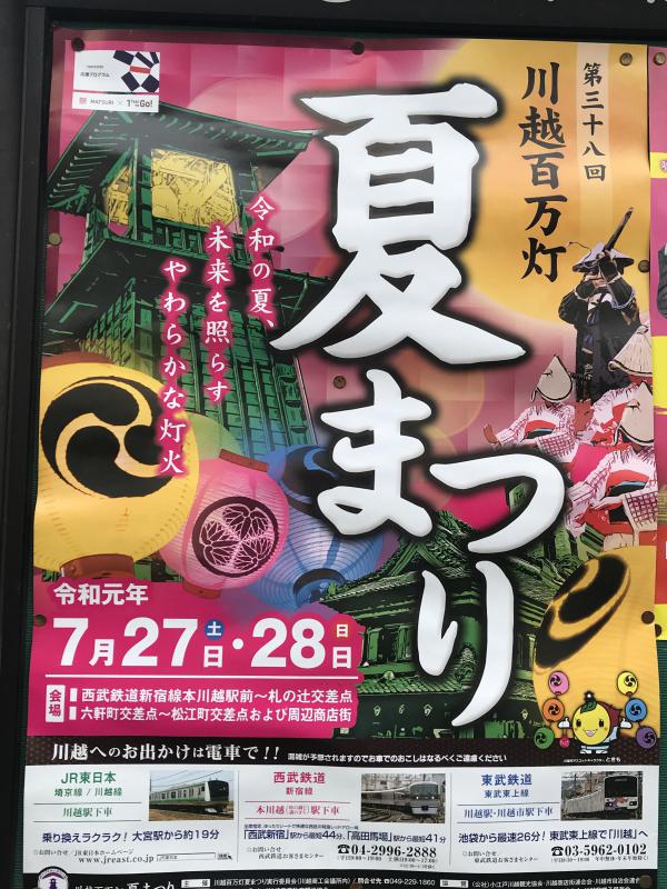 地域情報 2019.07.16 川越百万灯夏祭り 月末の27日、28日に恒例となりました川越百万灯夏祭りが開催されます。川越城主に恩義を感じた三田村家が新盆に城主をしのび提灯を掲げたことが起源の由緒あるお祭り今では打ち水、ダンス、夜店などなどたくさんのイベントもあり川越市民の夏の始まりのお祭りになっていますかなり混みあいますので公共交通機関をご利用いただくことおすすめします Post Share Hatena Line Pocket RSS feedly Pin it