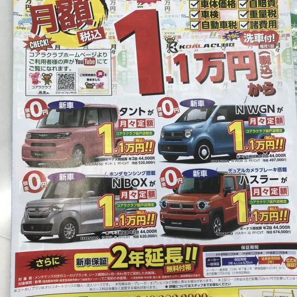 毎度おなじみ一万円リース