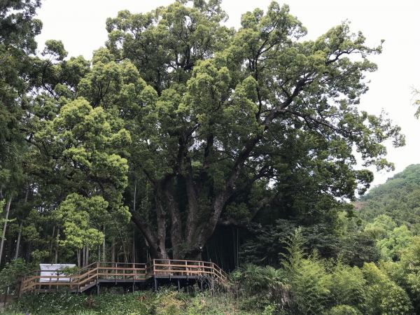 上谷(かみやつ)の山入(やまいり)集落に根を張る大クス(大楠)は、幹周り15m、高さ30m、樹齢は1000年以上にもなる巨木です。