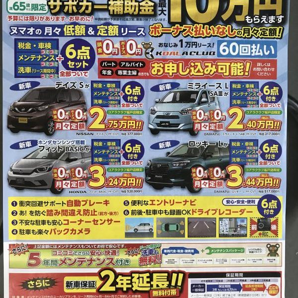 ヌマオマイカーリースサポカー補助金 シニアプラン