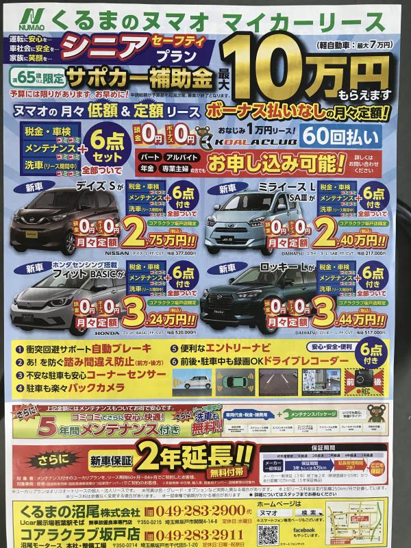 サポカー補助金とヌマオマイカーリースシニアプラン