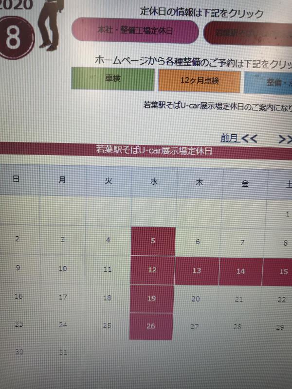 お知らせ 2020.07.31 8月定休日と夏休みのご案内 整備工場日曜、祭日に加え13~15日を夏休みとさせていただきます。 若葉駅そばU-CAR展示場毎週水曜日に加え13~15日まで夏休みとさせていただきます。 上記の件まことに勝手ではありますがご理解のほどよろしくお願い致します Post Share Hatena Line Pocket RSS feedly Pin it