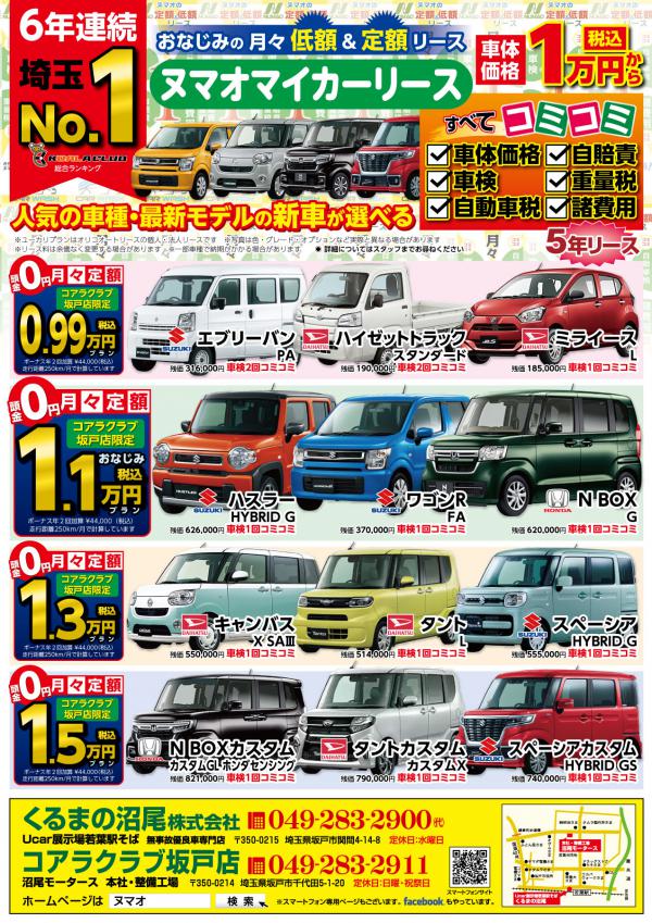 今回はコミコミ0.99万円から1.5万円までたくさんのラインアップをそろえました。