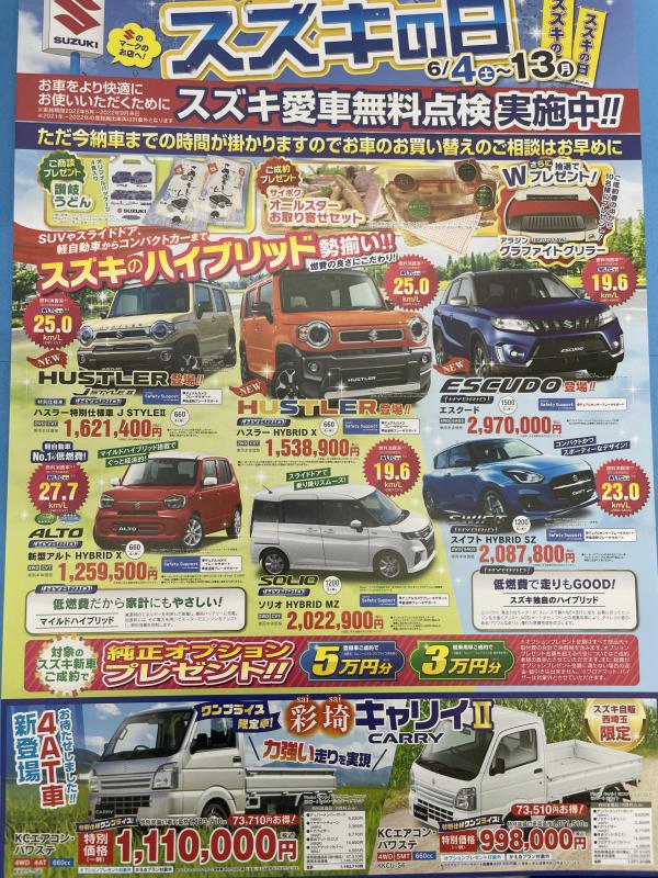 会社イベント 2022.06.04 スズキの日 本日4日より13日までスズキの日です。 ご来場&ご商談&ご成約プレゼントもありますので気なるお車の商談はこのスズキの日にどうぞ!! 弊社のお客様でこのDMが届いた方にはさらにご来場プレゼントもありますお気軽にご来場ください Post Share Hatena Line Pocket RSS feedly Pin it