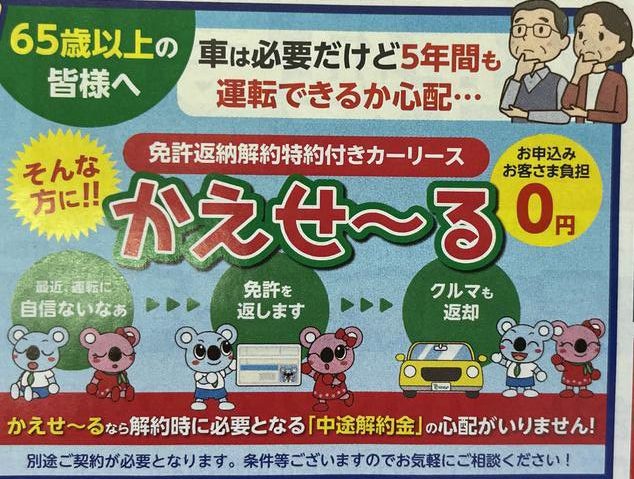 シニア向きプラン【かえせーる】もヌマオマイカーリースで!