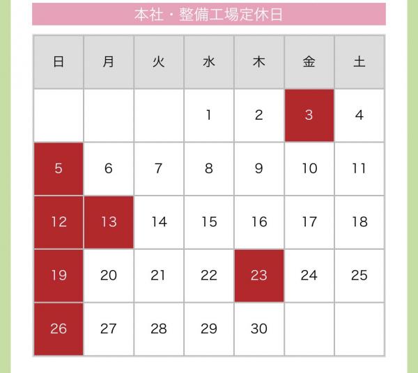 ヌマオグループ11月の定休日のお知らせ