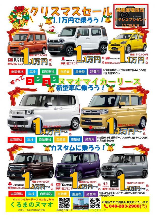 会社イベント 2023.12.17 クリスマスセール開催中 おなじみ¥1.1万円から乗れるヌマオマイカーリースクリスマスセールはドラレコプレゼントです Post Share Hatena Line Pocket RSS feedly Pin it