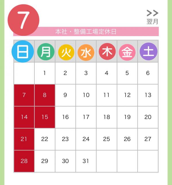 7月のヌマオグループ定休日のお知らせをさせていただきます