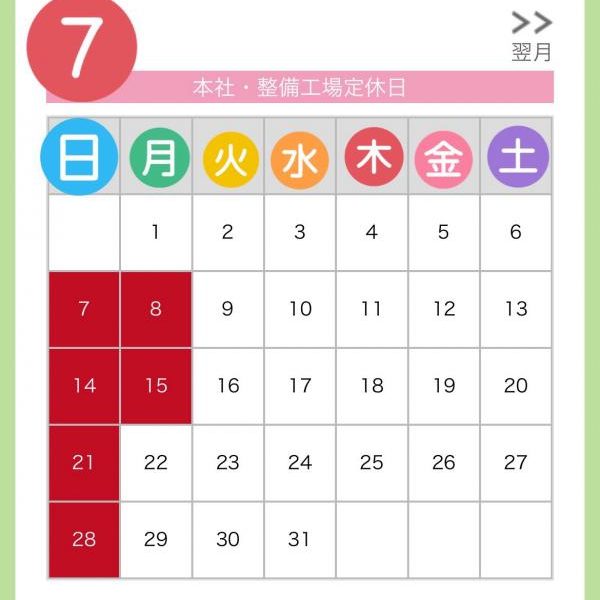 ヌマオグループ7月の定休日のお知らせ