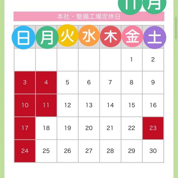 11月定休日のお知らせ