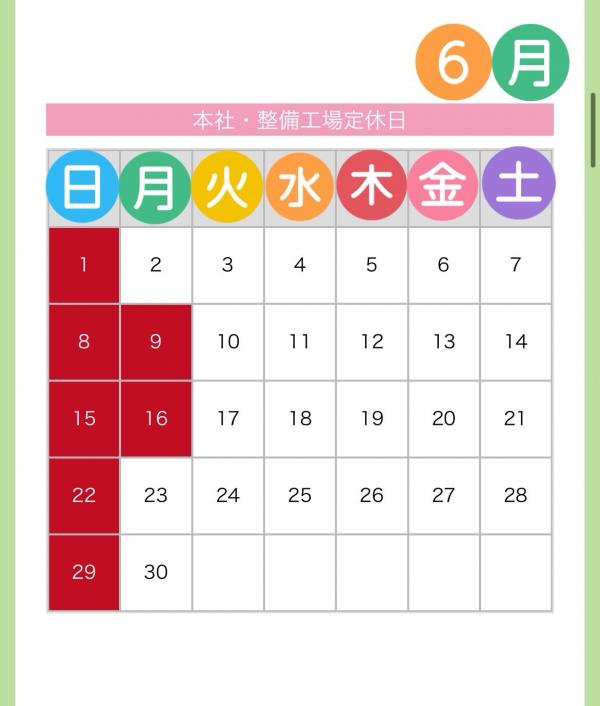 6月のヌマオグループの定休日のご案内です。