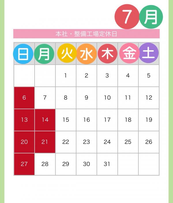 上記は【車の販売のこと】若葉駅そばU-car展示場の定休日となります