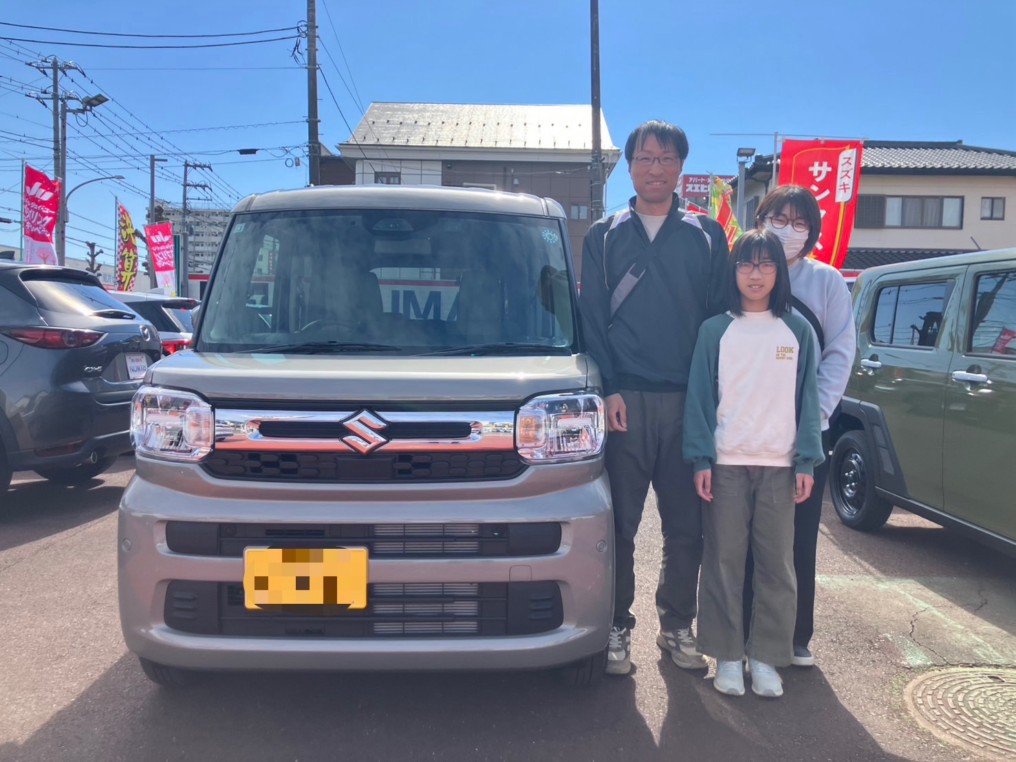 送迎でお使いになるということで室内空間の広いスペースのスペーシアはピッタリの車でお車も気に入っていただきまさにニコニコ納車となりました。