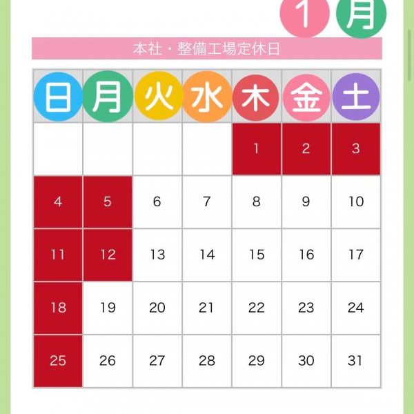 ヌマオグループ1月定休日のご案内