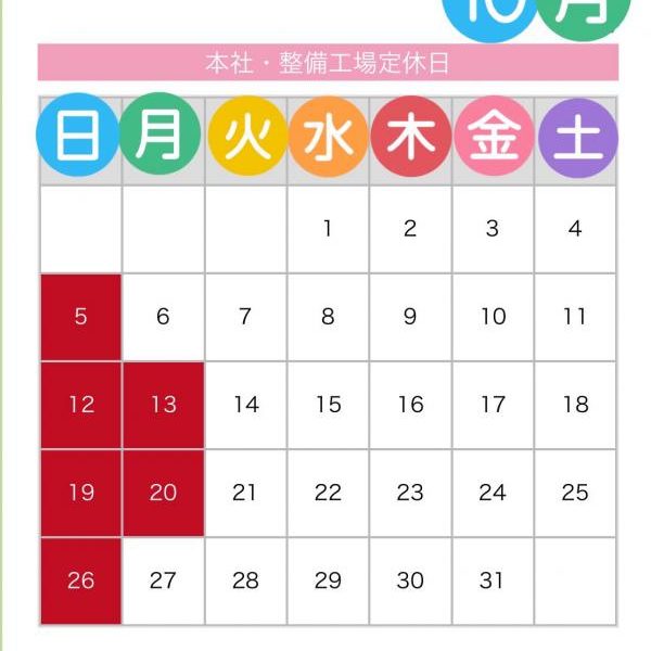 ヌマオグループ10月定休日のお知らせ