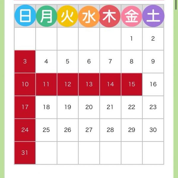 ヌマオグループ7月定休日のご案内