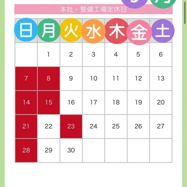 ヌマオグループ9月定休日のお知らせ