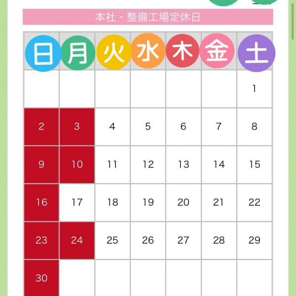 ヌマオグループ1月定休日のご案内