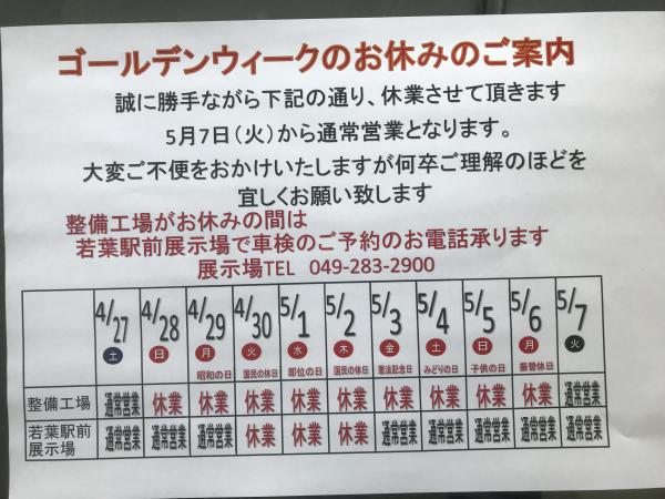 定休日のお知らせ