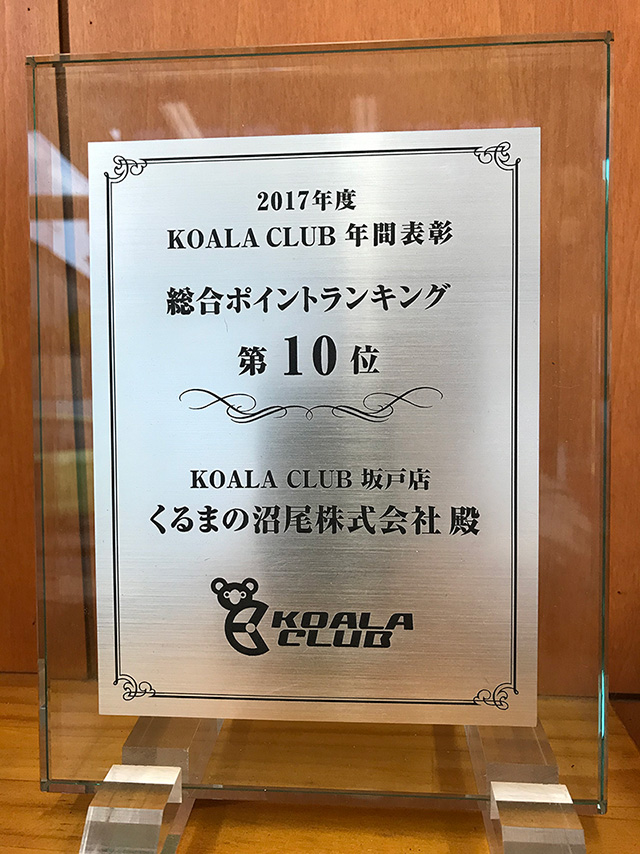 オリコオートリース社「コアラクラブ」10年ランキング12位入賞