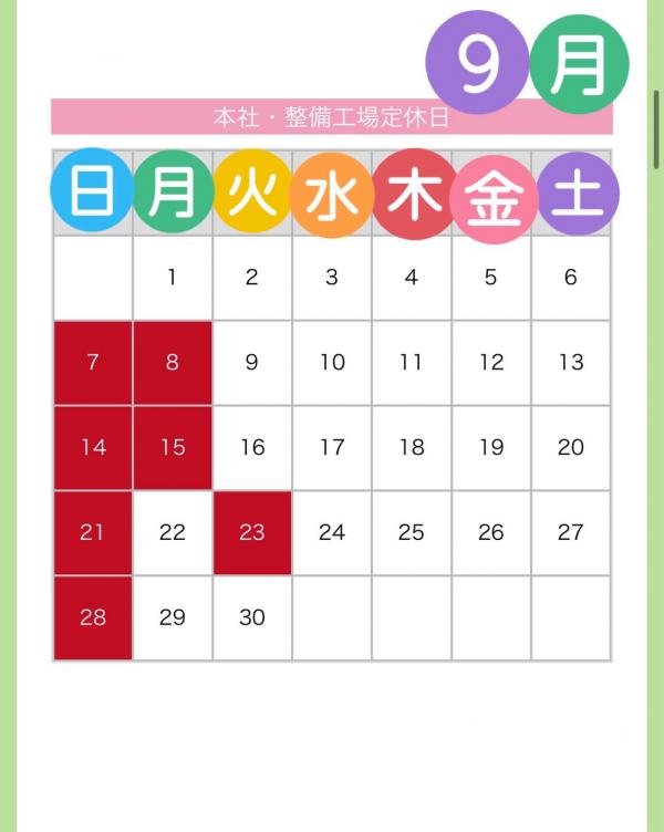 日頃ヌマオグループをご愛顧いただき誠にありがとうございます。 今月の定休日のご案内です 【車の整
